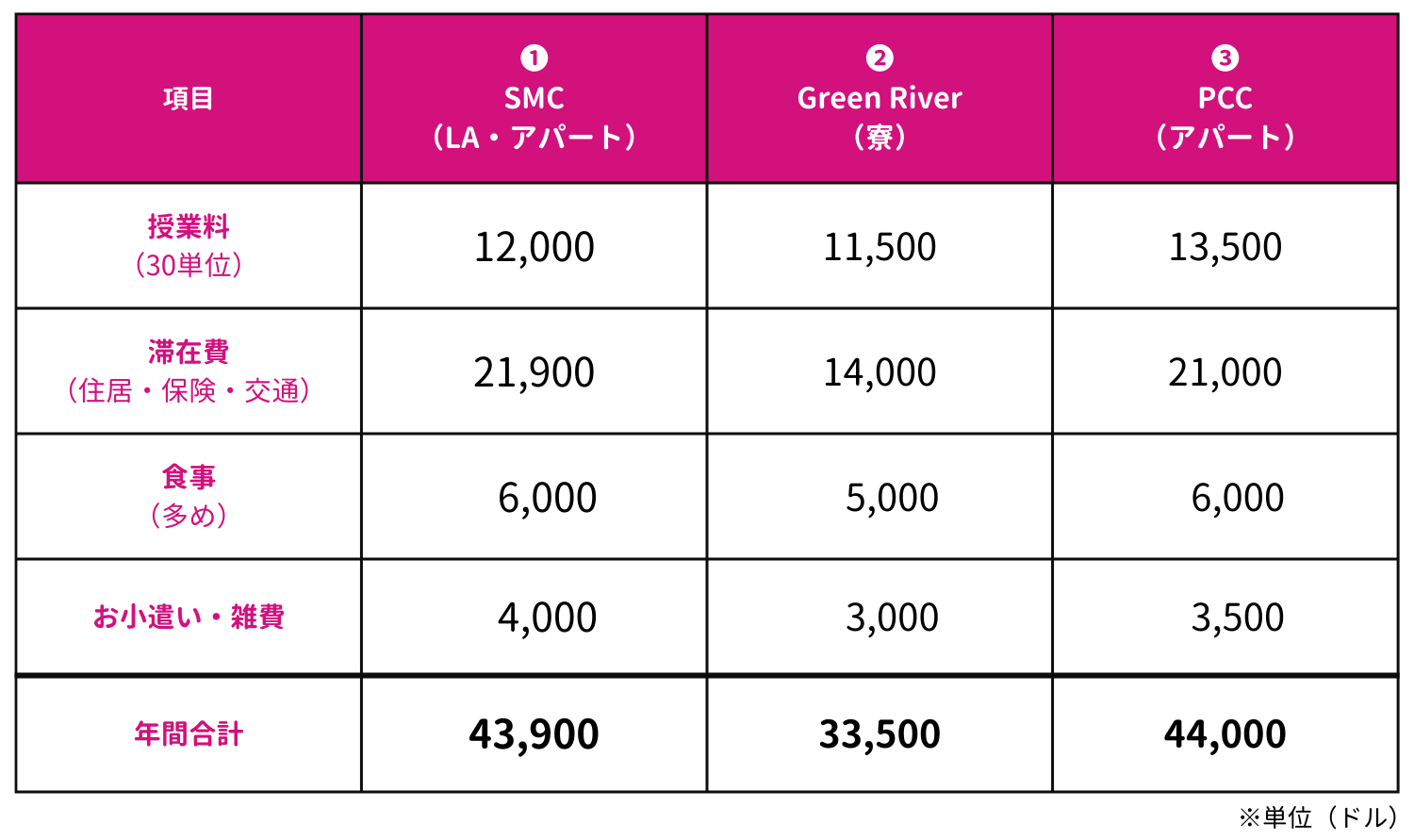 これは地域によってかなりの差はありますが、授業料に加え、生活費・保険・教材費などを含めると、年間約25,000〜44,000ドル(約380〜680万円/1ドル=155円換算)が平均的な留学費用となります。これは決して「格安留学」と呼べる水準ではありません。
