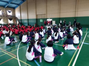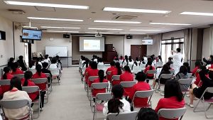 中2の先輩たちが、昨日を振り返って中1のお話を聞いています