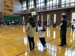 朝は自己紹介タイムを含む1、 2年生の交流を深める時間を設けました。 先生が準備してくれたゲームで盛り上がったり、 縦割りのグループを作ってテスト勉強の仕方や部活動の紹介などの話をしてもらいました。1、2年生は一層仲が深まりました!
