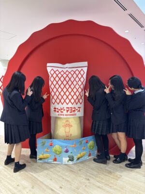 その後、マヨネーズ工場について体験を通して学習。館内に隠れている“隠れキユーピーちゃん”を見付けながら楽しそうにしている生徒もちらほら。
