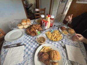 お祝いにはホストファミリーの伝統のお祝い方があり、それに従って食べました。