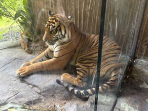 さらに私はトラやチーターなどの猫科の動物が好きでガラスの近くへ行ってみるとなんとどっちもとても近くにいて尻尾や手がもふもふふわふわですんごくきゃわいかったです。