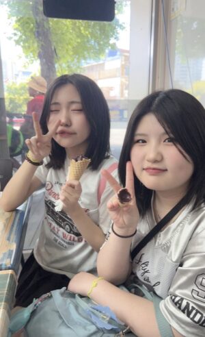 昼食後は街道沿いを散策し、有名アイスクリーム店へ。「シングル」と注文すると、こちらでは2種類のアイスクリームを選ぶことができます。一人ひとり店員さんと会話し、ちゃっかり味見までお願いしながら、楽しそうに好みのアイスクリームを注文し、食後のデザートを満喫していました。