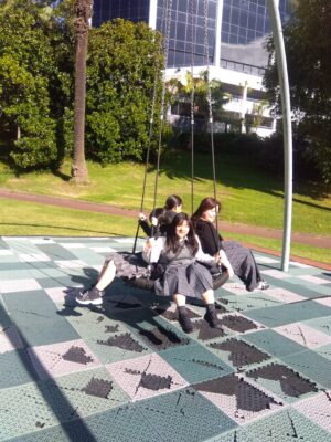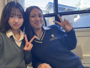 学校に初めて行って、式を開いた時に緊張してる人も多く見られましたが、式の後はニュージーランドの方たちと神田女学園の生徒で楽しくお話をしました。
