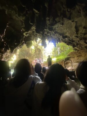 10:45からのリセスに、すっかり慣れてしまった生徒たちの胃袋は、この時間で既に限界に達していたようで、バスを降りた直後は、観光の目玉であるワイトモ洞窟観光を目の前に、口に出る言葉は「お昼はいつ?」「お腹空き過ぎで気持ち悪い」であり、機嫌が優れない表情の生徒が少なくありませんでした。
