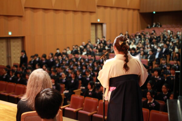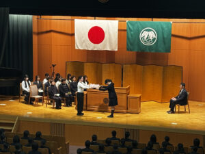 また、ご来賓の皆様や在校生代表からも祝辞が述べられました。答辞では、仲間との日々や学校行事、部活動など3年間(6年間)の思い出とともに、支えてくださった保護者・先生方への感謝が語られました。
