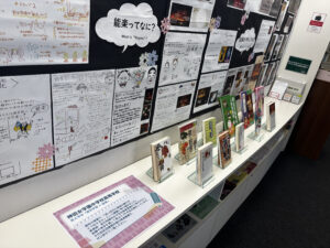 そうして完成した作品が、今回図書館にて展示されます。図書館所蔵の関連書籍も一緒に展示してくださっています!